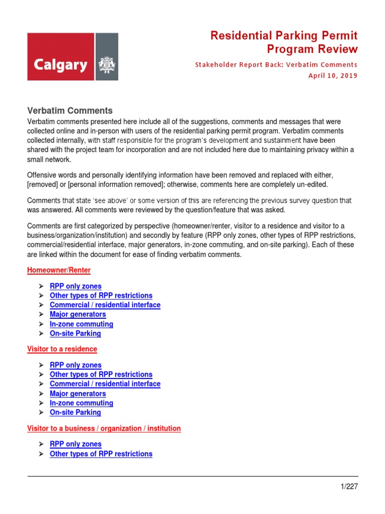 Residential Parking Permit Program Verbatim Feedback Pdf Parking Street